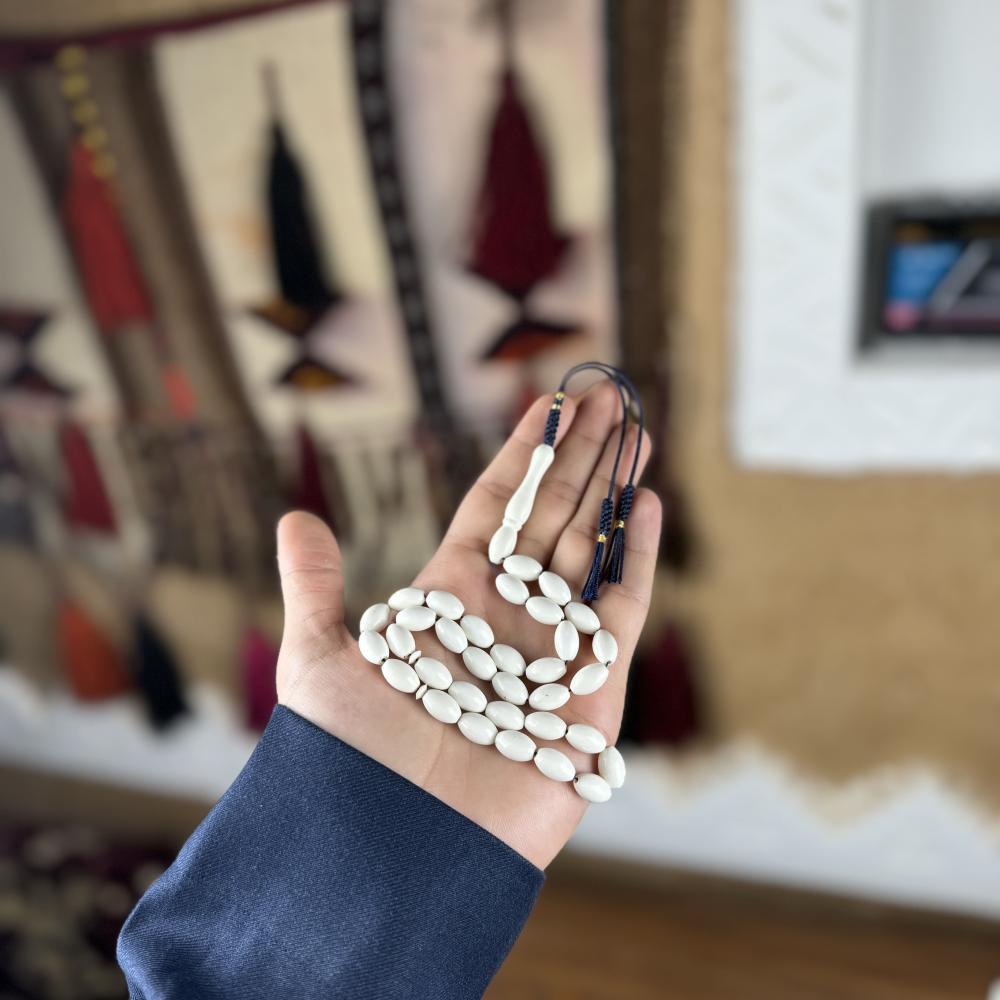 سبحة عظم الجمل الفاخرة، تتميز بتفاصيلها الجميلة و رائعة واتقان ناعمة الملمس، صممت لإظهار اناقة مالكها وقوة حضوره واناقته وذوقه الرفيع، يمتاز الخيط بانه متين ومتماسك , لتناسب جميع الاذواق.
