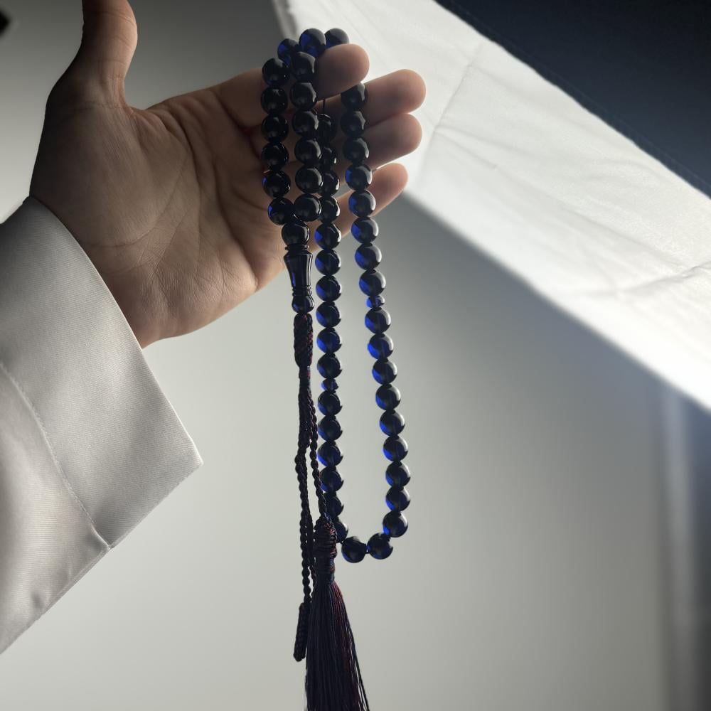 المسباح الزعفراني مسباح فاخر من خامة إيرانية ذات رائحة زعفرانية ثابتة ،مخروط يدويا بجودة عالية، مسباح رسمي وفخم للإهداء والمناسبات, عليها طربزونة تركية من الفضة مما يعطي السبحة جمال وفخامة.