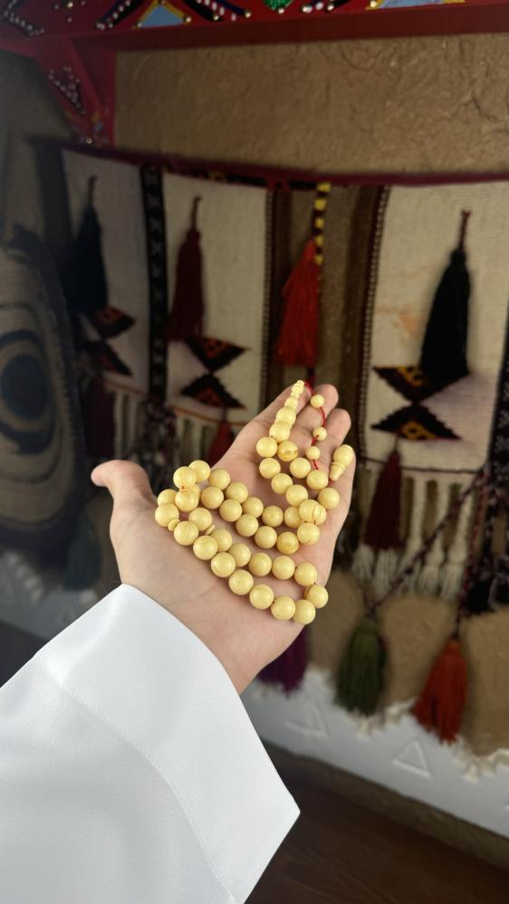 سبحة من خامة مميزة من المستكة المصرية ذات ملمس حريري. تتميز هذه السبحة بلون أصفر معجن رائع.
